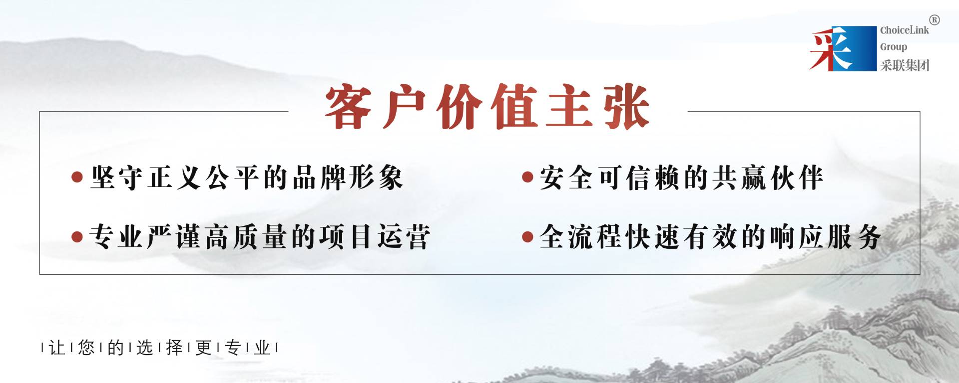 采聯(lián)集團(tuán)致力于為廣大客戶提供采購(gòu)全流程專(zhuān)業(yè)服務(wù),堅(jiān)守“守正出奇”的核心價(jià)值觀,以公平公正為原則,不斷優(yōu)化服務(wù)、堅(jiān)持創(chuàng)新發(fā)展。依托多元化、專(zhuān)業(yè)化的服務(wù),不斷向“締造最具創(chuàng)新力的采購(gòu)服務(wù)品牌,構(gòu)筑采購(gòu)領(lǐng)域最專(zhuān)業(yè)的資源交互平臺(tái)”的遠(yuǎn)大愿景邁進(jìn)。